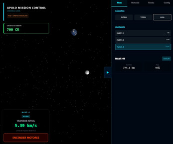 Descripción: El juego trata sobre trayectorias orbitales para aterrizar en la Luna a la velocidad adecuada con el combustible disponible.